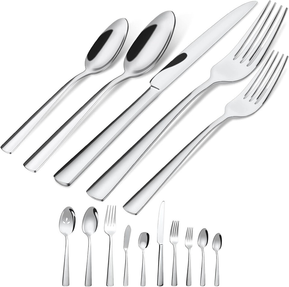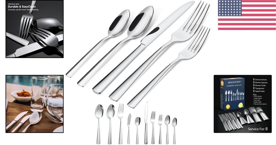 - Dishwasher Safe 45-Piece Silverware Set - Ergonomic Design for Effortless Dining