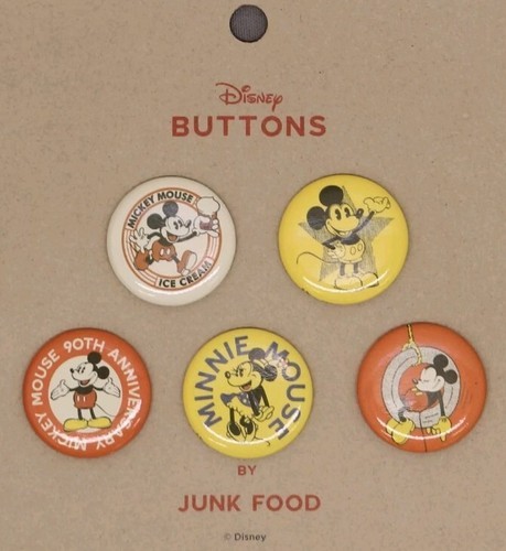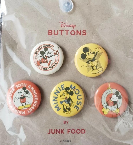 This sale is for Disney Buttons by Junk Food Five (5) metal buttons Mickey Mouse 90th Anniversary ~ 1928 Pins are new in original packaging Please view photos for a good description of this item Thank you!