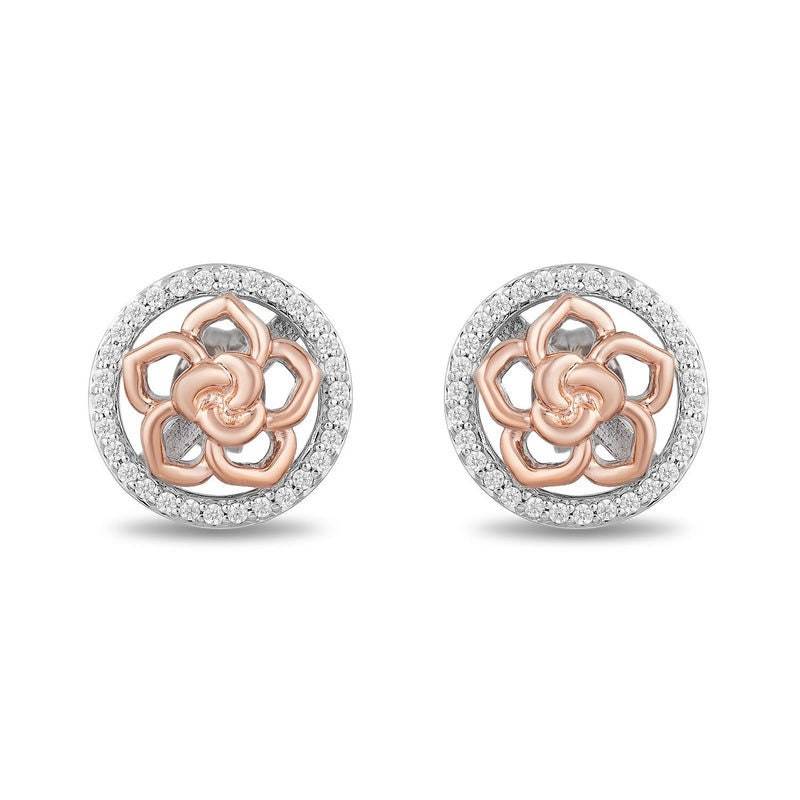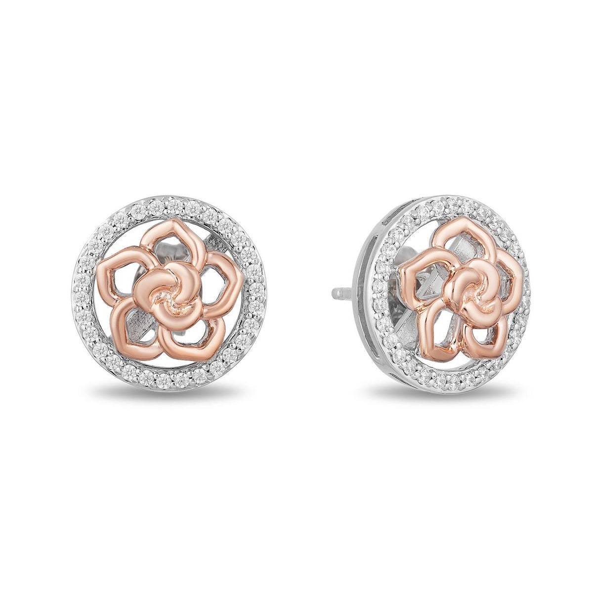 - Disney Fine Jewelry 14K Rose Gold And 925 Sterling Silver Stud Earrings 1/2 CTTW