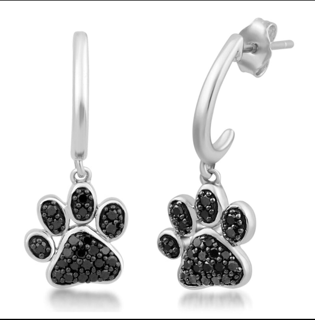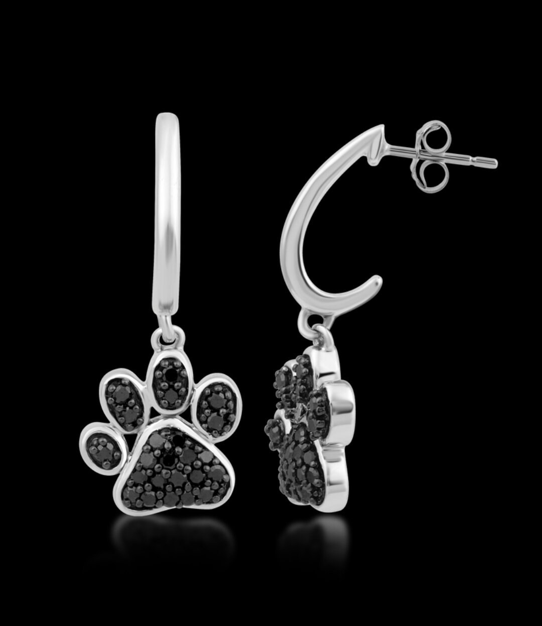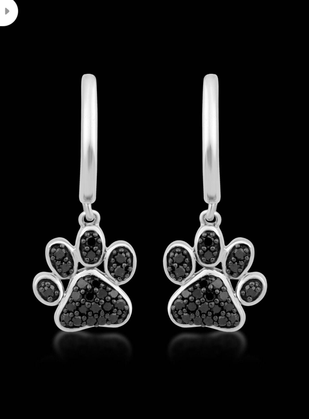 - Disney Fine Jewelry Black Natural Diamond Paw Print Dangle Earrings in14K Gold A