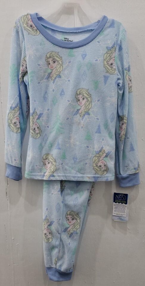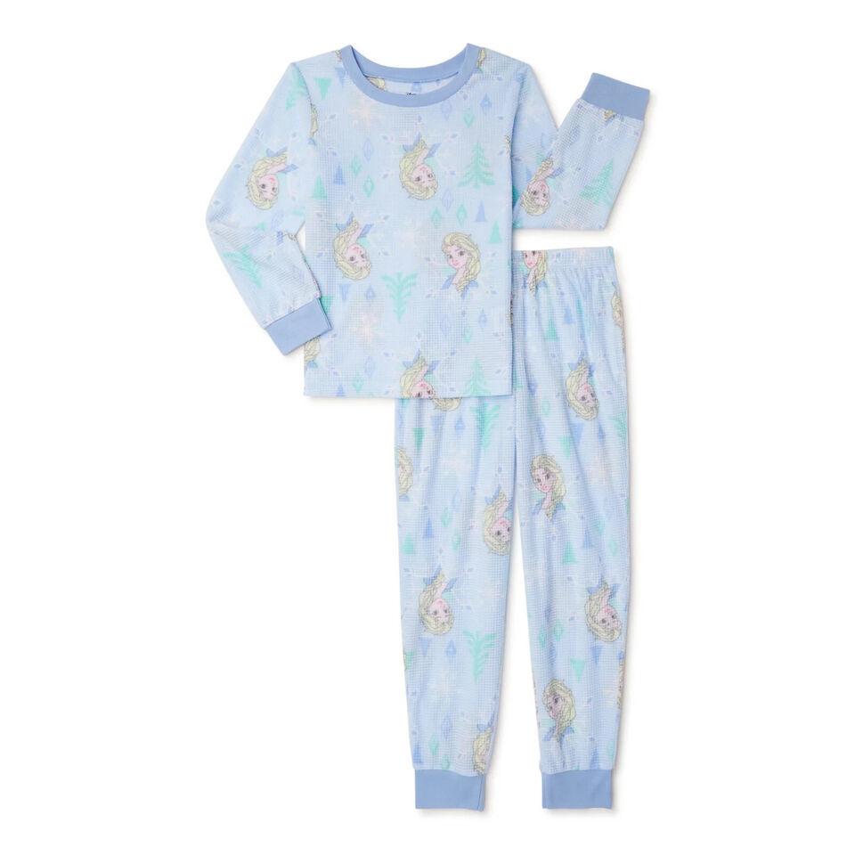 Disney Frozen 2 Girls 2-Piece Christmas Pajama Set, Blue Size S/CH(6/6X) Elsa and Christmas go together perfectly on these Frozen 2 soft and cuddly pajamas. An easy way for any fan to spread holiday cheer and stay toasty warm and comfy all night long. Material: 100% Polyester fire-retardant micro fleece Care: Machine washable Set Includes: Pajama top and pants Top features: Contrast crewneck; fitted; long sleeves; allover print Pants features: Pull-on styling; elastic waistband for added comfort; contrast cuffs; allover print Disney, All Rights Reserved