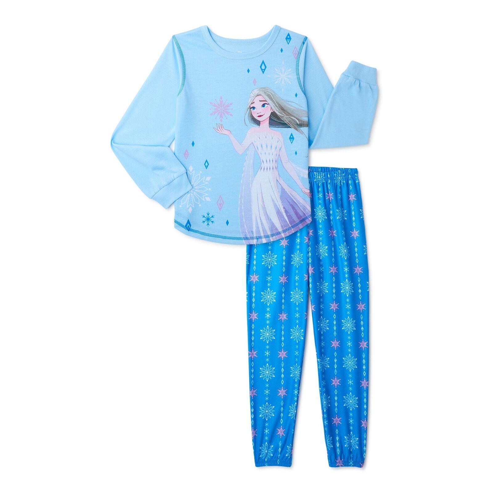 Disney Frozen 2 Girls Long Sleeve Top/Pants 2-Piece Pajama Set, Size S/CH (6-6X) Add a little Disney style to her sleepwear starting with this Two-Piece Pajama Set featuring her favorite characters from Frozen! Crafted in comfortable fabric that?s perfect for lounging or bedtime, this girls? Disney PJ set is highlighted by its colorful print design. Sweet dreams! Material: 100% Polyester Care: Machine washable Country of Origin: Imported Set includes: 1 long sleeve top and 1 pair of pants Top features: Pullover style; crewneck; long sleeves; contrast print Pant features: Pull-on style; elasticized waist for added comfort Disney, All Rights Reserved Girls? Disney Frozen Pajama Set
