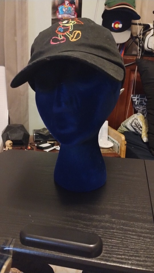 Disney Mickey Mouse Adjustable Strapback Hat Cap Neon Electric Black Adult. Condition is Pre-owned. Shipped with USPS First Class.