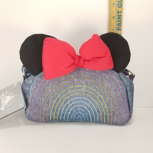 - Disney Minnie Mouse Blue Denim Saddle Bag Crossbody Purse Hand Bag Rainbow NEW