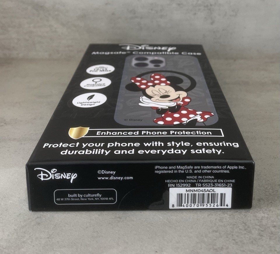 Condition Brand New ? Sealed / New in Retail Packaging. Packaging may show very minor handling wear from storage. Never opened or used. Please review the photos for the exact item condition. Description Authentic Disney Minnie Mouse phone case for iPhone 12 / 13 Pro Max, packaged new and MagSafe compatible. Features lightweight, durable protection with integrated magnetic alignment for MagSafe charging and accessories. Cute classic Minnie Mouse artwork in red polka dots. Perfect for Disney fans, collectors, or as a gift. Details Brand: Disney Character: Minnie Mouse Phone model compatibility: iPhone 12 Pro Max / iPhone 13 Pro Max Features: MagSafe compatible, enhanced phone protection, lightweight design Item: Protective phone case Condition: New in sealed retail packaging Color/Style: Minnie Mouse red bow gray background