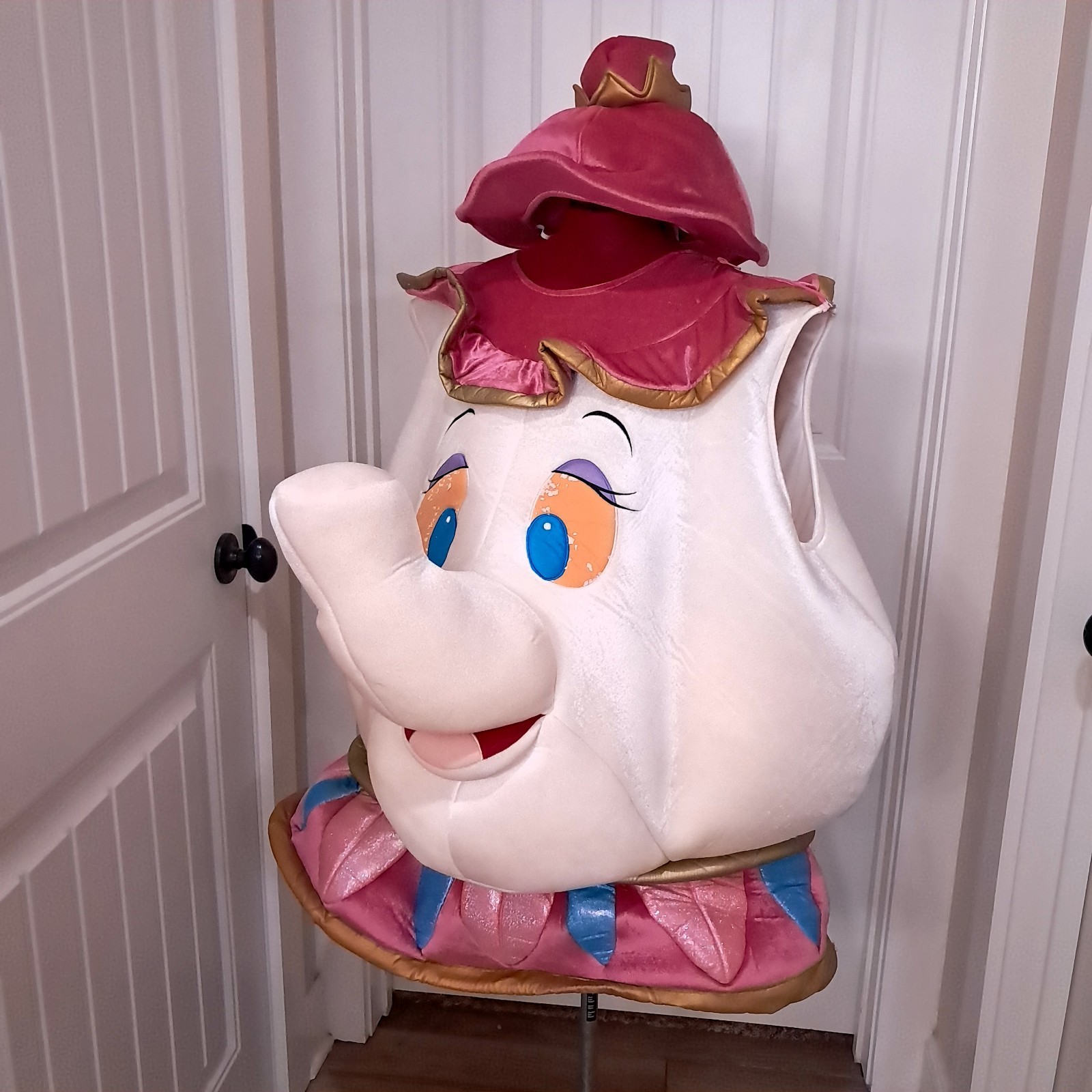 Disney Mrs. Potts Costume sz M Medium teapot tea Beauty the Beast Ms. Potts Size MEDIUM. Includes hat and costume body. Discolorations/marks. Vinyl is peeling/cracking in most areas. See pics for details including measurements.