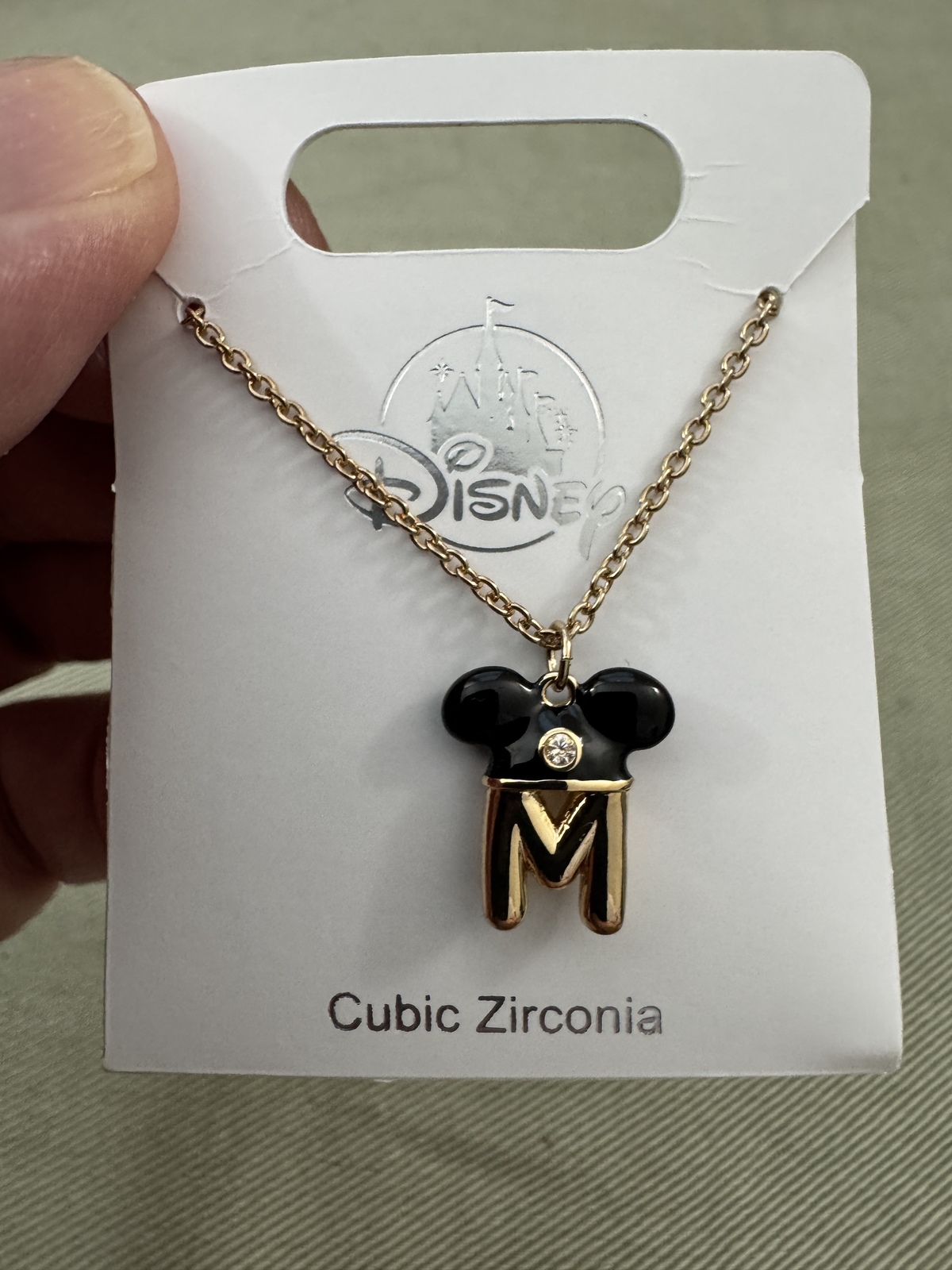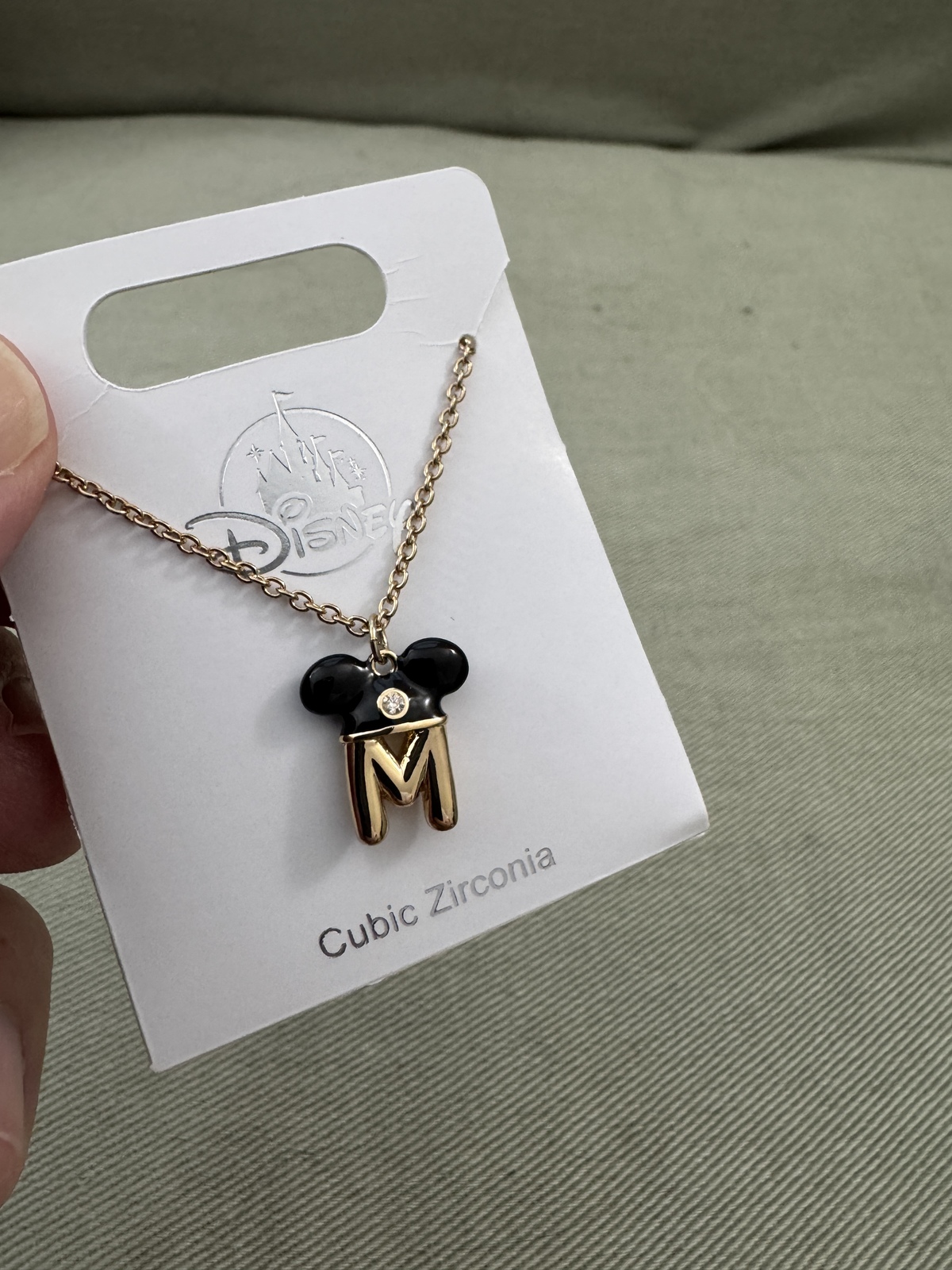 Disney Parks Mickey Mouse Ears Cubic Zirconia Letter M Gold Color Necklace NEW