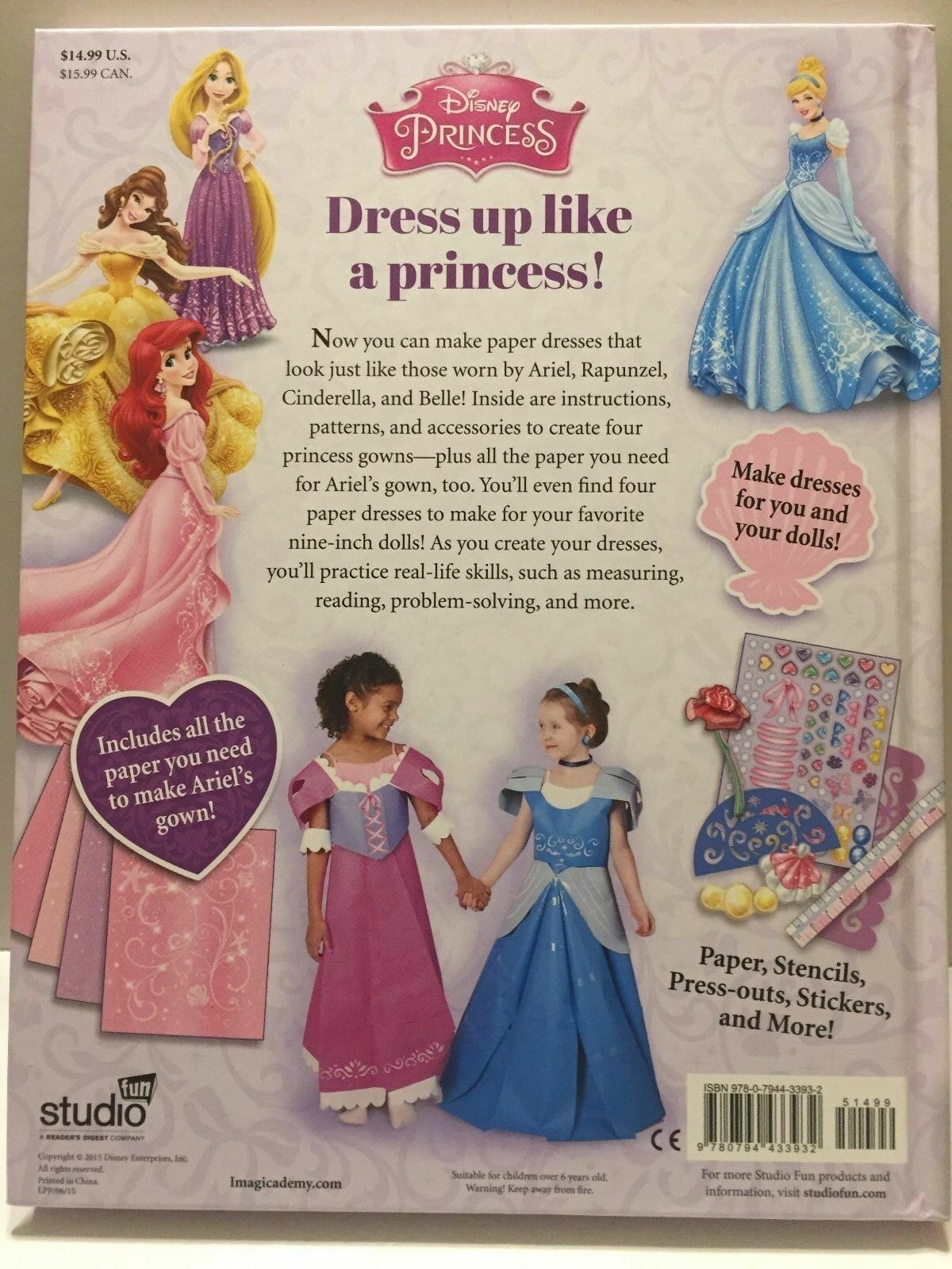 Disney Princess Create Your Own Paper Dresses Book. Great book for Parent-Child Activity. Contains instructions to create 4 Princess Dresses for kids and/or their dolls. Paper, stencils, press-outs and stickers all in this book. Perfect for your little Princess. Regular cover price $15. Quite heavy book, will ship as Media Mail. 1 business day of handling and 2-8 business days of shipping. Tracking included with media Mail shipment. Thank you for your interest in this item!