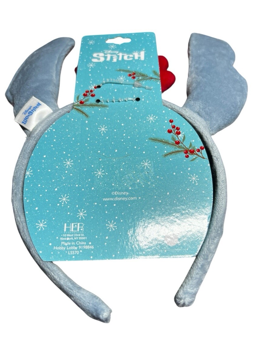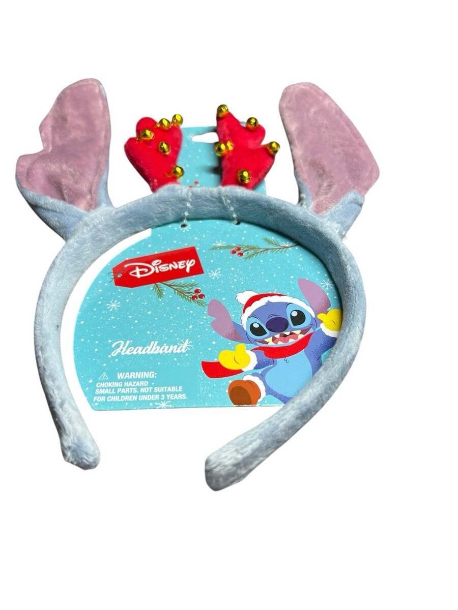 Disney Stitch Christmas Headband Ears Antlers Jingle Bells, Happy Holiday Blue