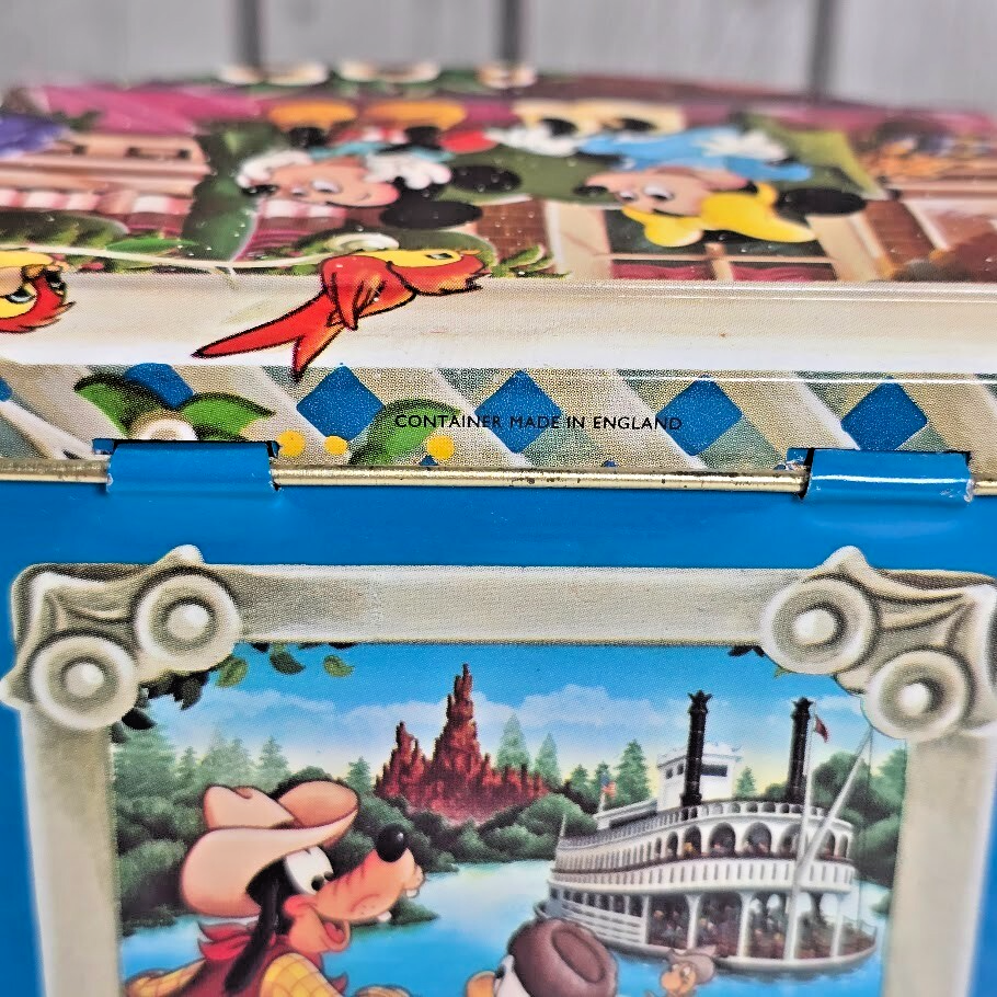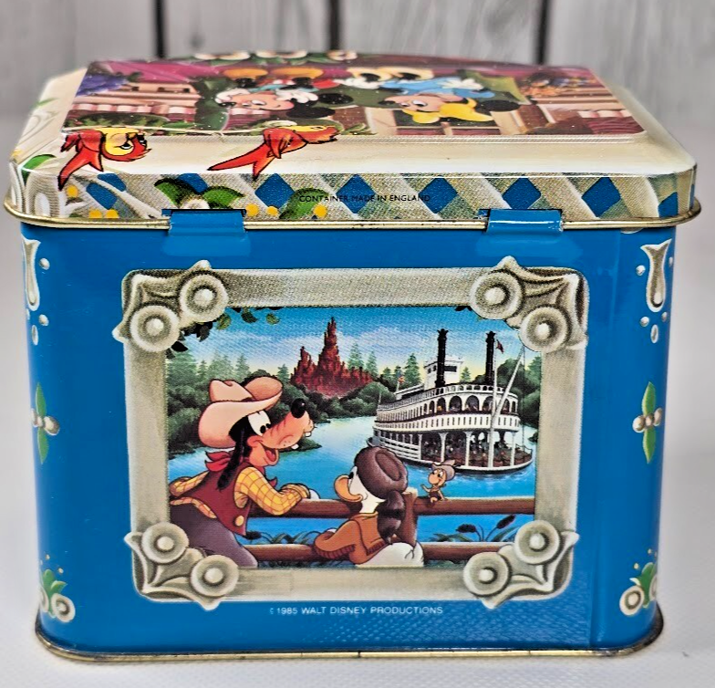 Disney World Candy Jar Tin 1985 England Mickey Minnie Goofy Vintage Collectible