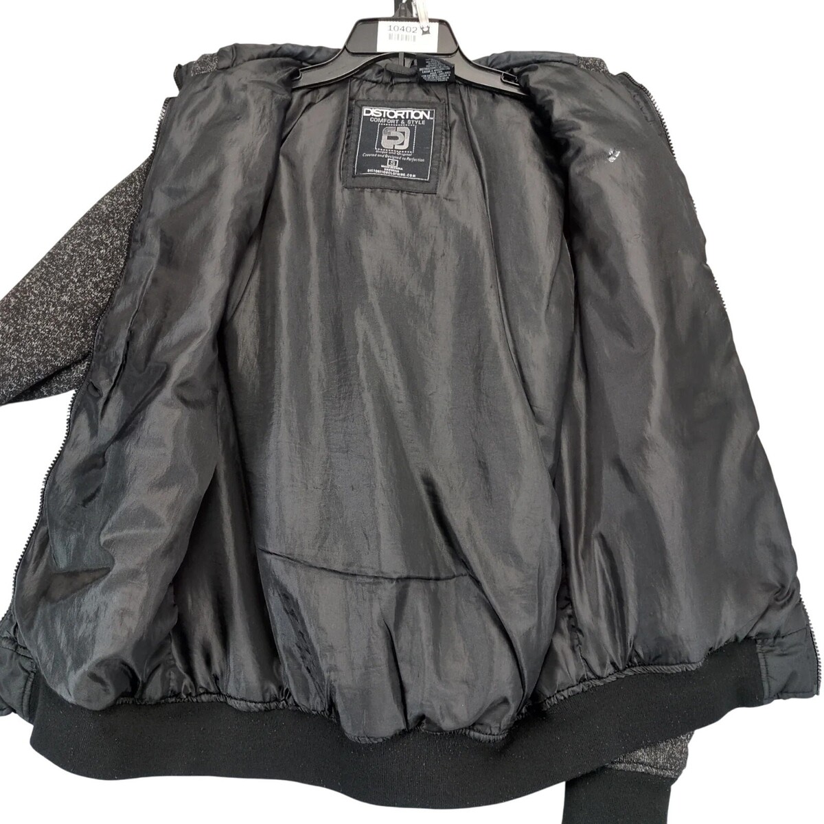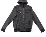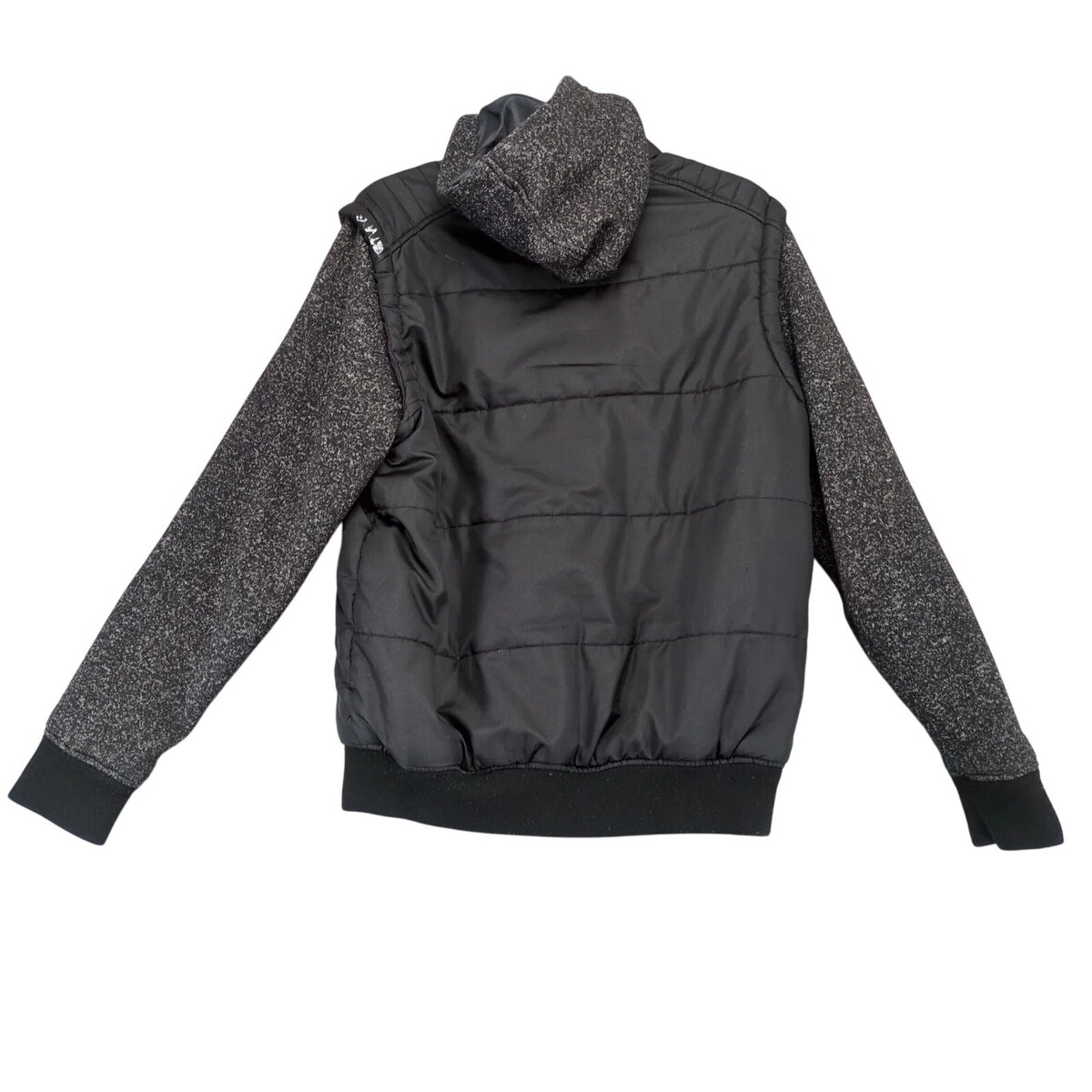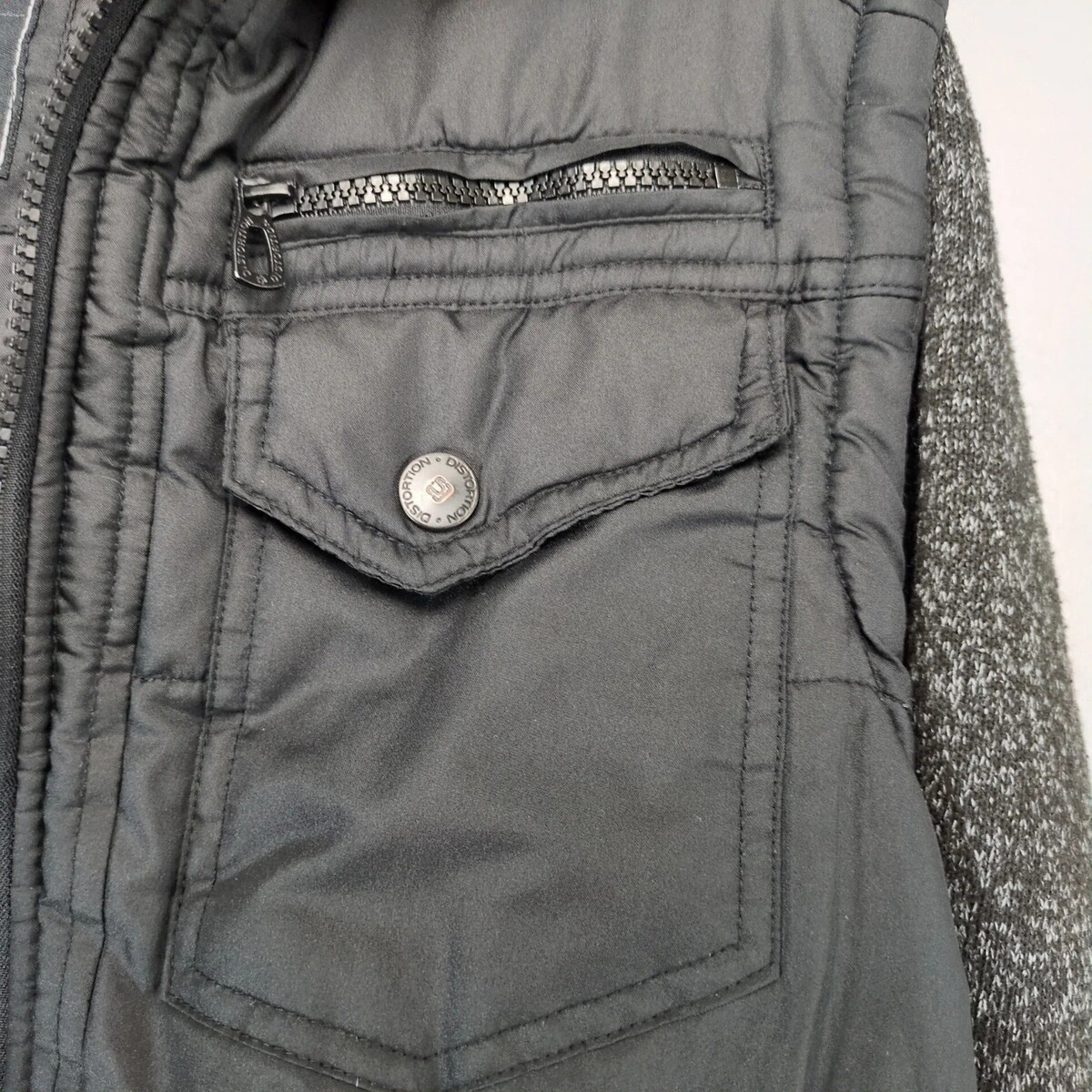Distortion Black Puffer Jacket Men's S Knit Sleeves Hood Pocket Full Zip Grunge