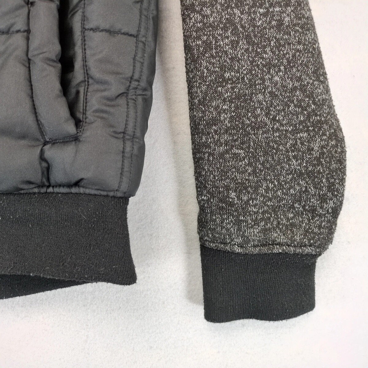 Distortion Black Puffer Jacket Men's S Knit Sleeves Hood Pocket Full Zip