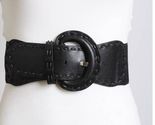 - Distressed Wide Stitch Elastic Belt Western Boho Chic Style Black
