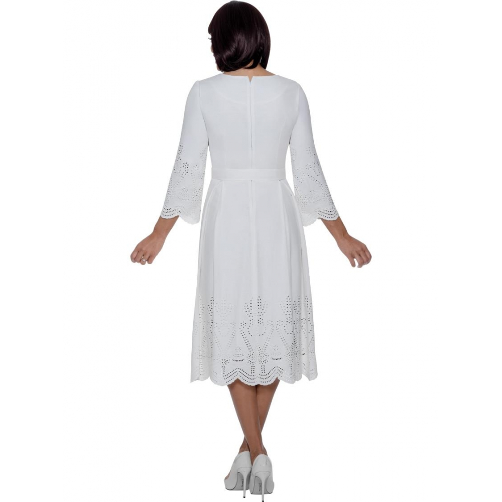 - Divine Blessings Broderie Anglaise Elegant Midi Dress with Scalloped Hemline.