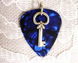- DK BLUE GUITAR PICK w COOL KEY CHARM PENDANT NECKLACE
