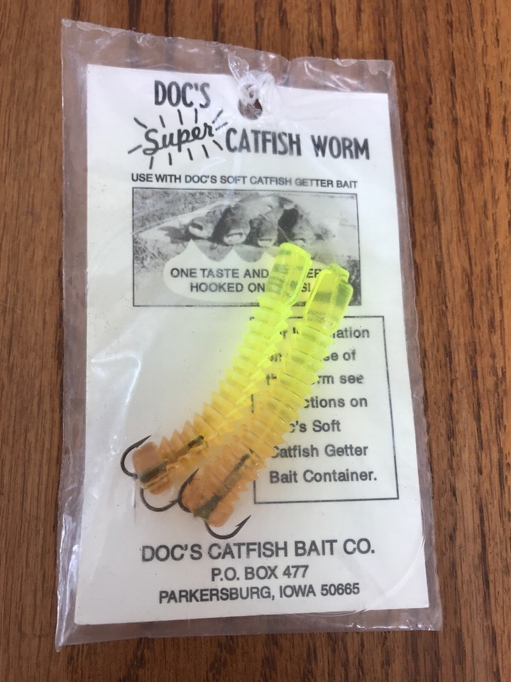 - Doc's Super Catfish Worms / 2 1/2" Rigged Fishing Dip Baits Treble Fish Hooks