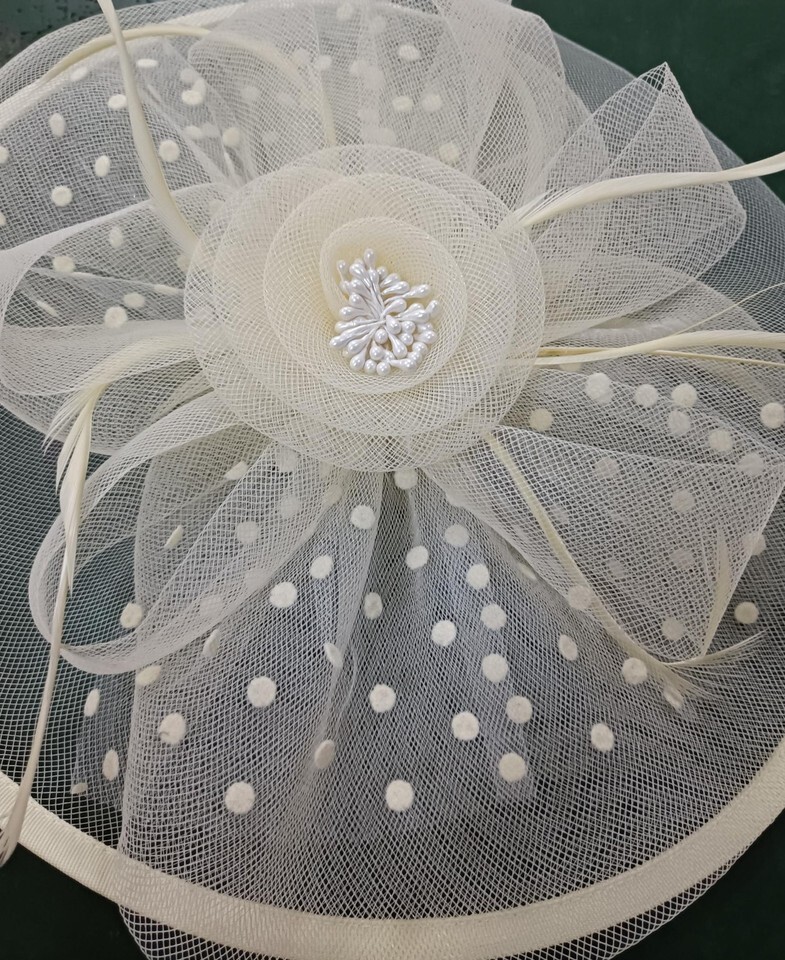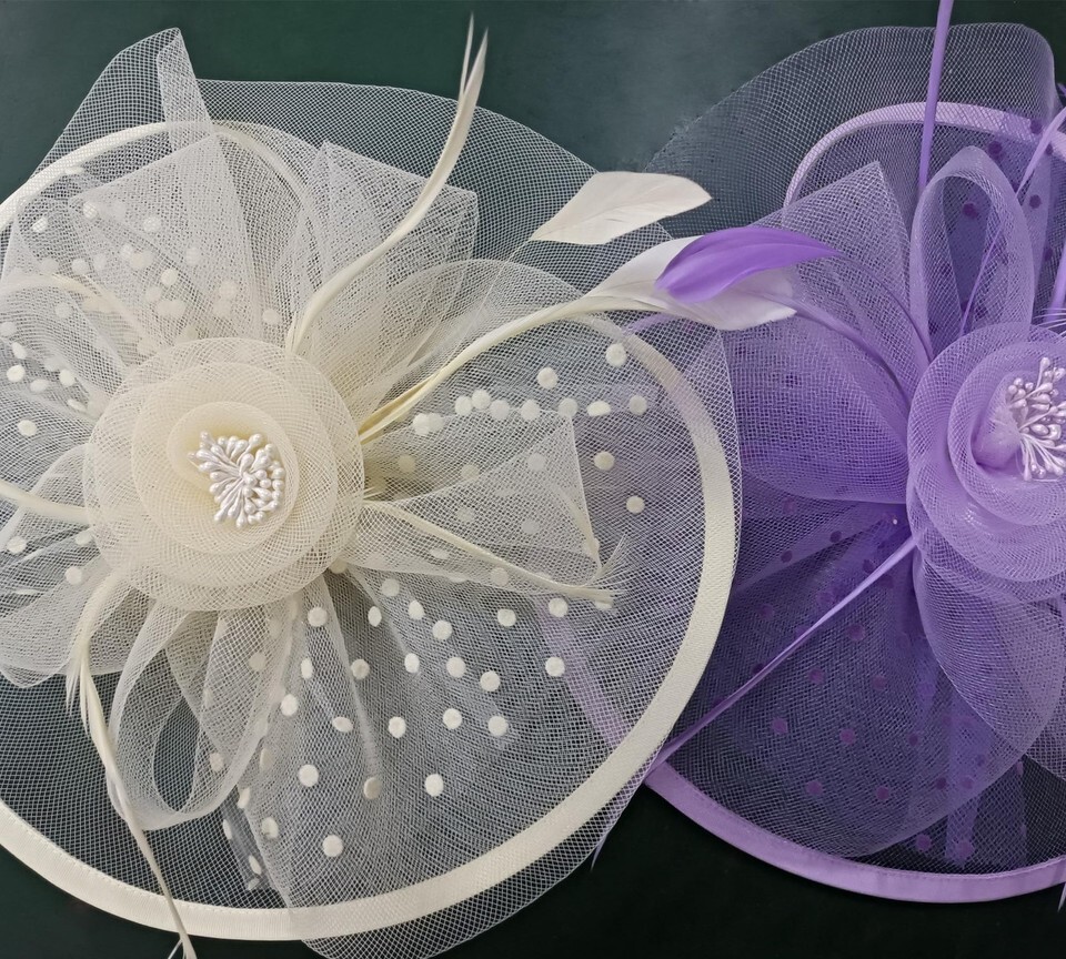 To make the women's derby hat more delicate and lightweight, we use high quality polyester, mesh fabric and feathers to make it, the material is very durable but soft, it can support the whole hat shape perfectly.