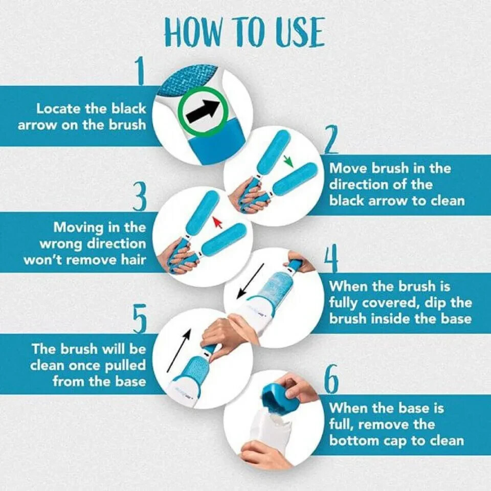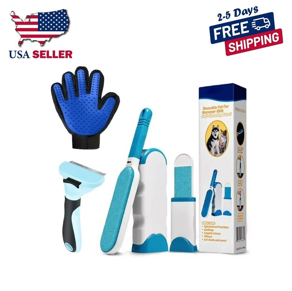 Dog Cat Pet Fur Hair & Lint Remover With Self Cleaning Base Reusable Grooming