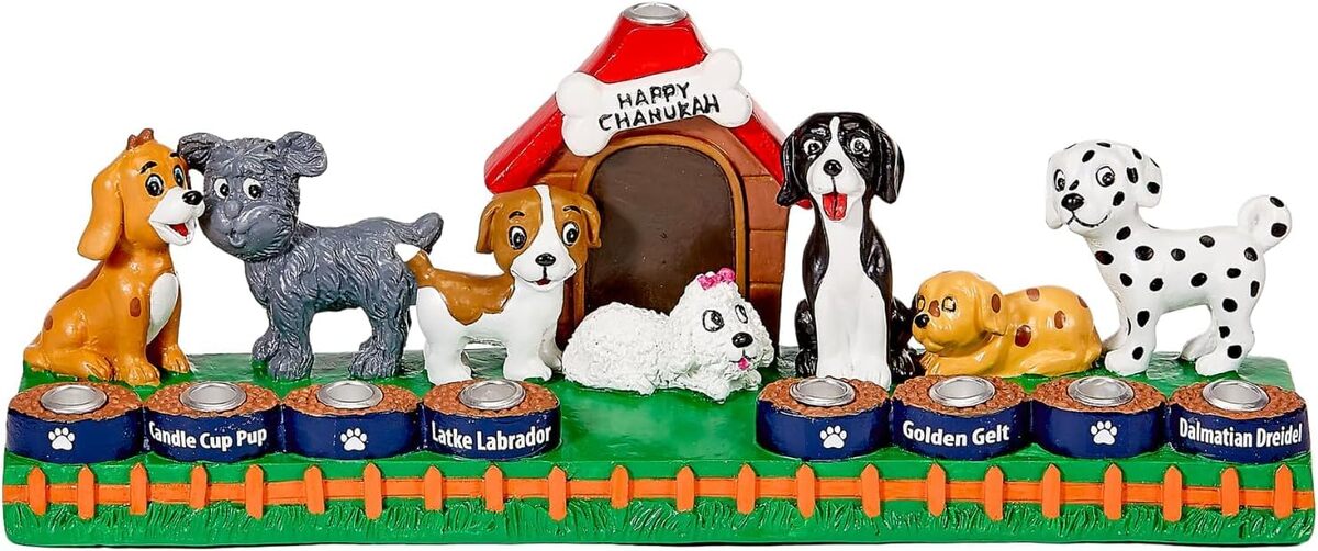 Bullet point: Join your love of Chanukah and "man's best friend" into the special Chanukah ceremony! Detailed, adorable pups adorn this loveable Menorah, and will excite and delight celebrators of all ages. A perfect gift for the pet lover and admirer, this Menorah will be enjoyed for many memorable years to come!