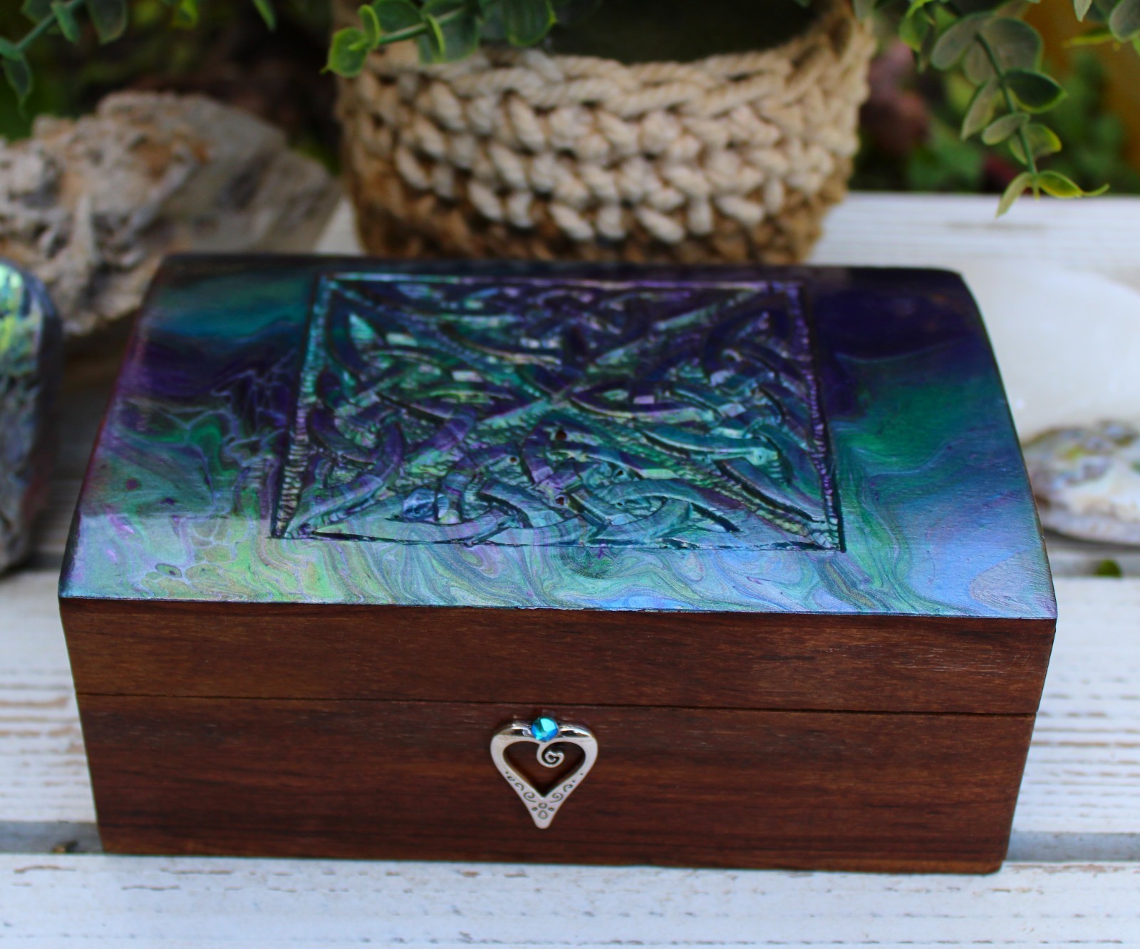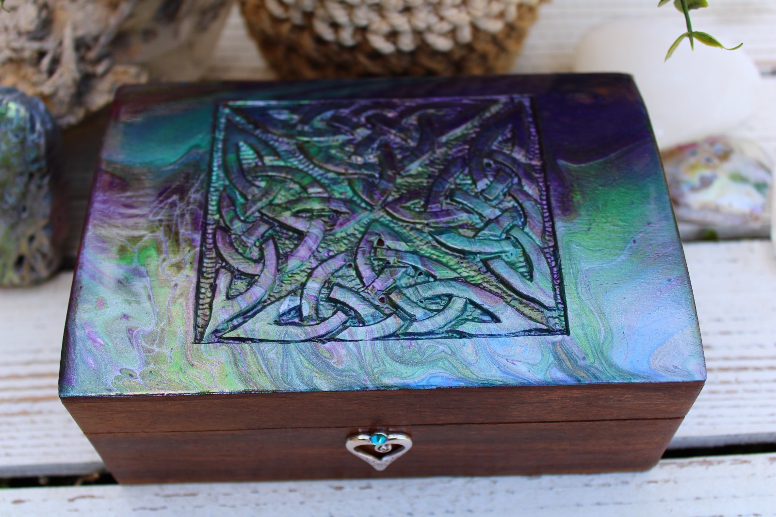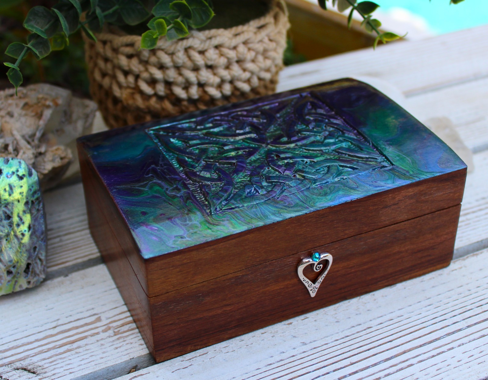 This is a Memorial Urn for your beloved Dog, Cat or Pet. It measures 6" x 4" x 2.5". I created it using the acrylic pour method, so no two will ever be alike. This Urn box will accommodate the remains for a pet up to 30 pounds.