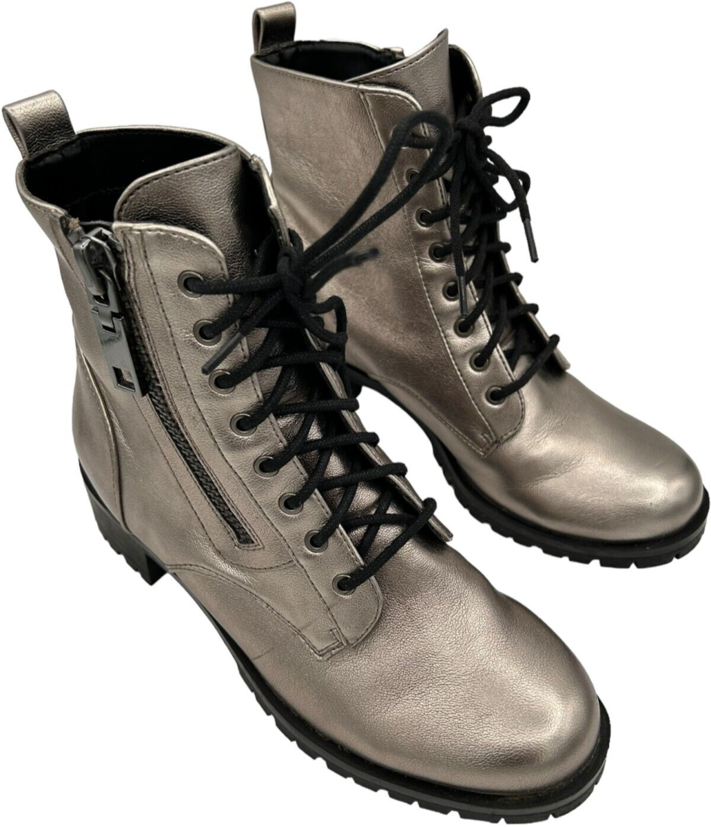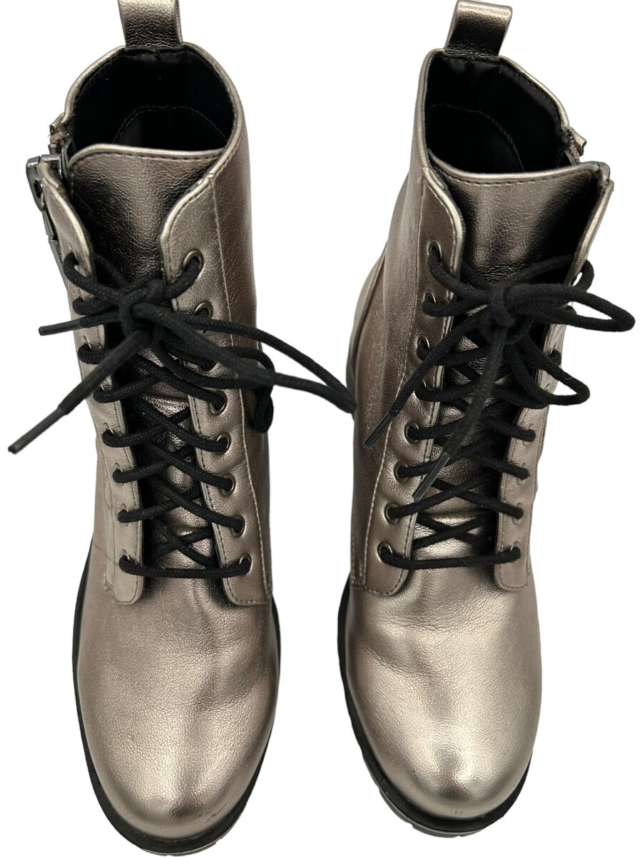 Dolce Vita Palmer Women's Metallic Pewter Leather Combat Booties size 6.5 lace-up closure with side zipper Buy with confidence. Check out our reviews. Also, happy to combine shipping to save you when you buy multiple items.