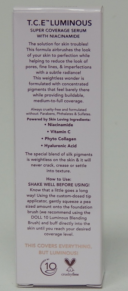 The Doll 10 T.C.E Super Coverage Serum in Deep/Rich (1 fl oz / 30ml) is a hybrid foundation-serum designed to provide full coverage while nourishing the skin. Infused with niacinamide, hyaluronic acid, and collagen, this formula aims to reduce the appearance of pores, fine lines, and redness, delivering a smooth, radiant finish.