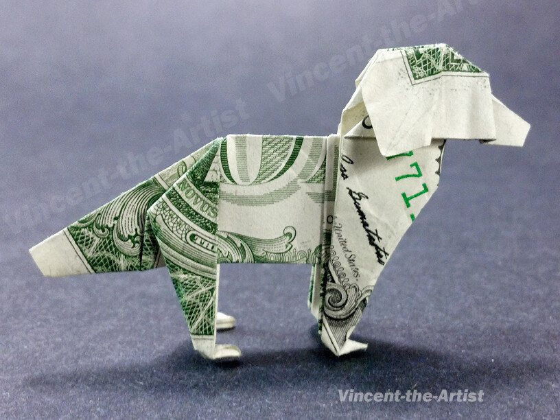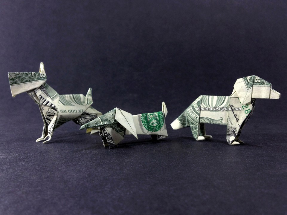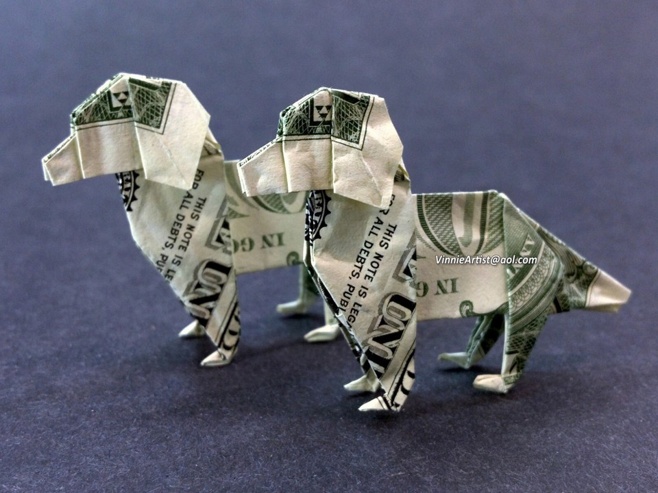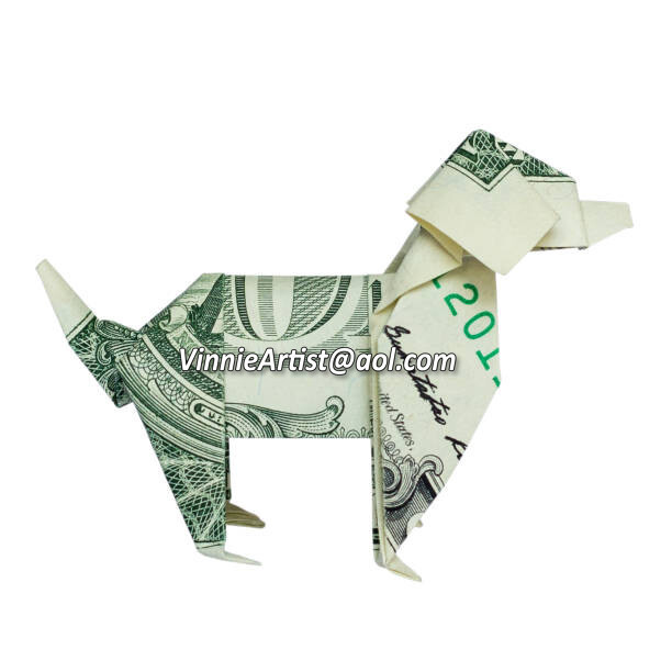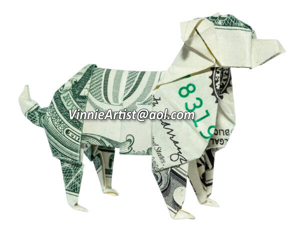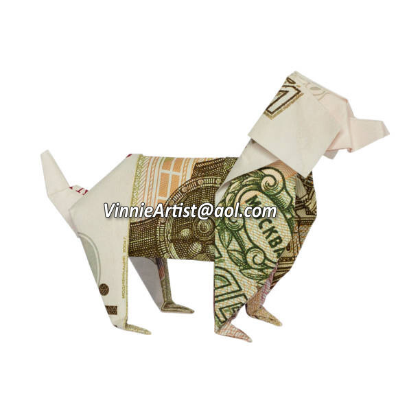 Dollar Origami DOG Made with REAL MONEY Handmade Cash Animal Pet Christmas Gift