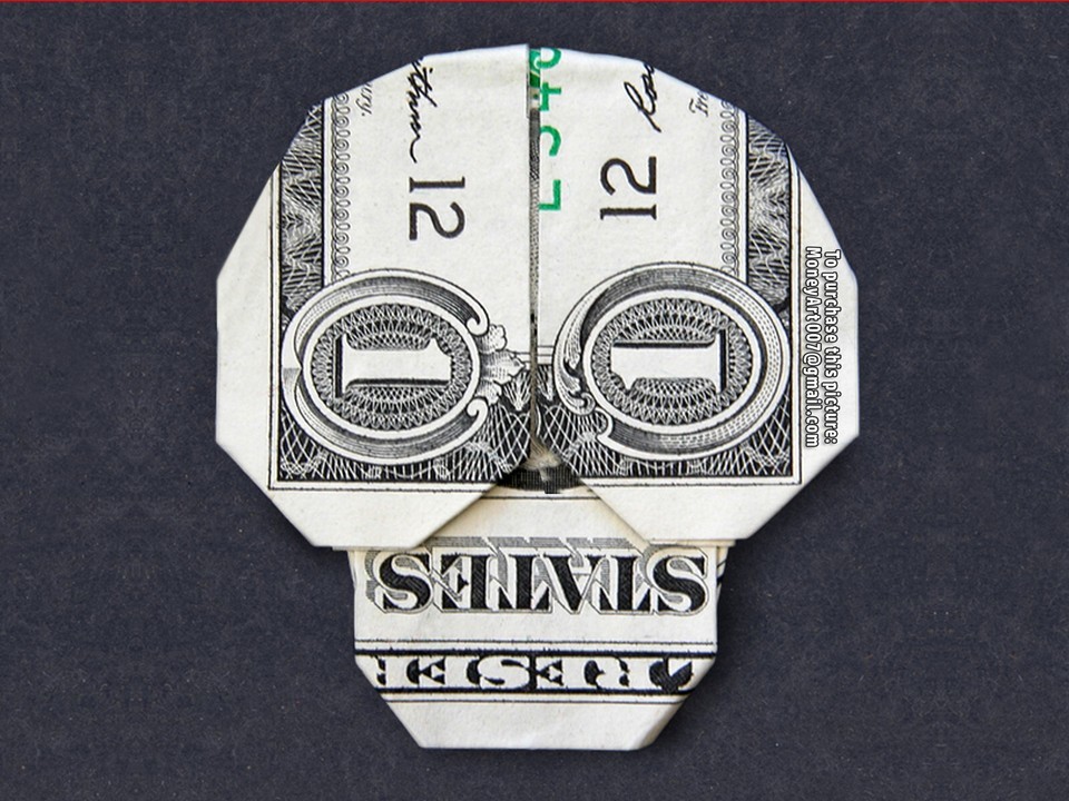 Dollar Origami Skeleton SKULL Made with REAL MONEY Handmade Cash Art Gift Idea