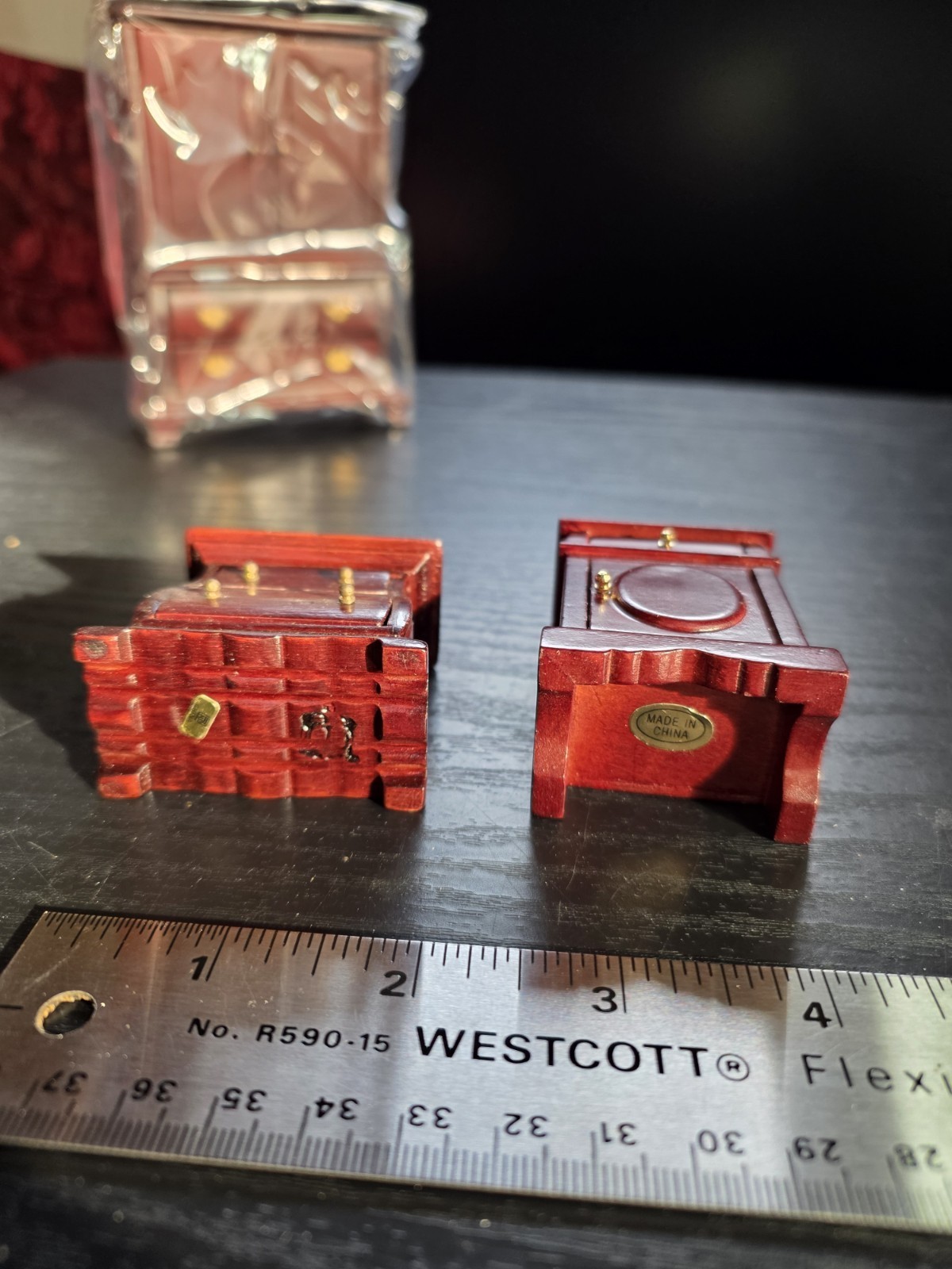 - Dollhouse Miniature Mahogany Wardrobe Armoire 2 Drawers And 2 Nightstands 1:12