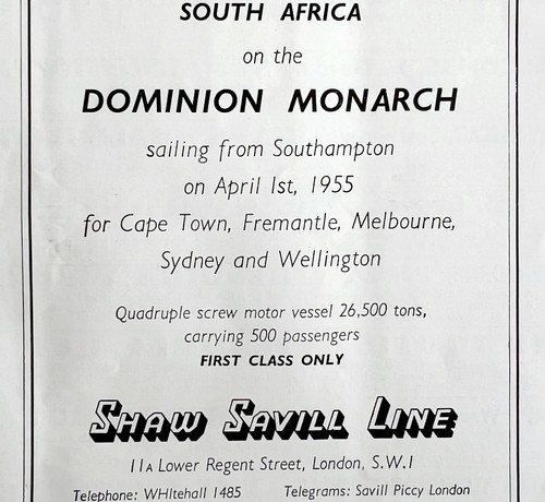 Dominion Monarch Cruise Ship 1955 Advertisement UK Import Shaw Savill Line DWII8