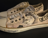 - Don Ed Hardy Sz 13 White Slip-On Laceless Low rise Tennis Shoes Skull Destroy