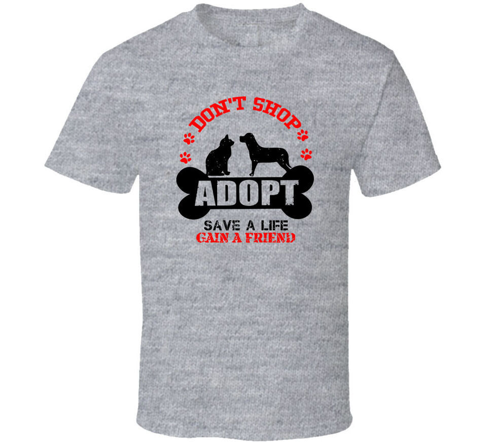 - DON'T SHOP ADOPT RESCUE DOG CAT LOVE ANIMALS PETS logo Tee Shirt T-shirt Unisex