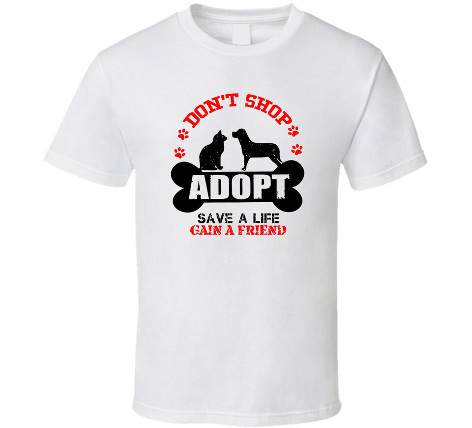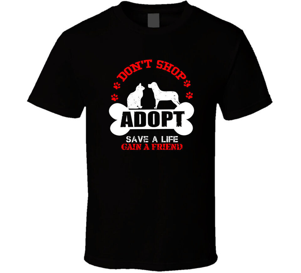 DON'T SHOP ADOPT RESCUE DOG CAT LOVE ANIMALS PETS logo Tee Shirt T-shirt Unisex