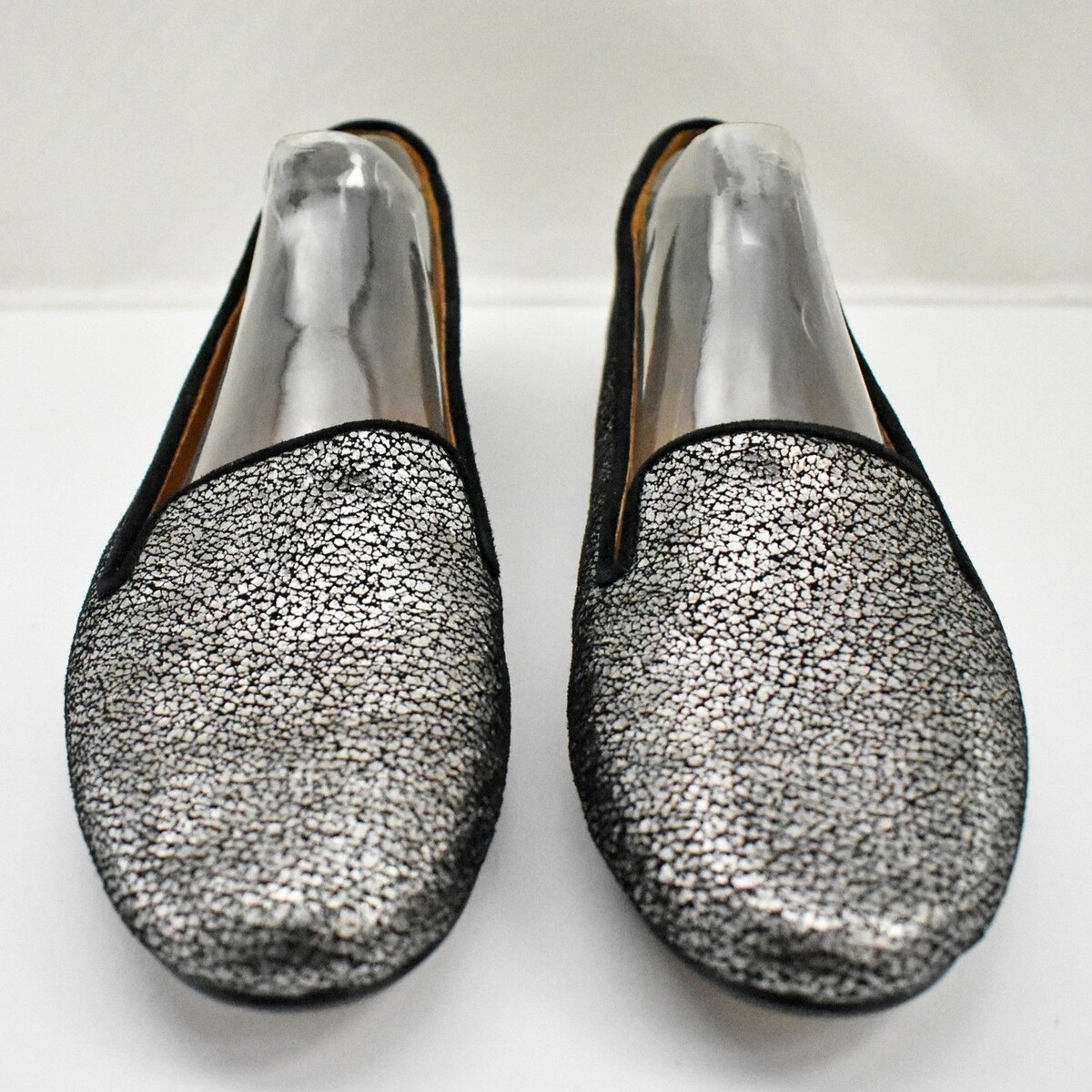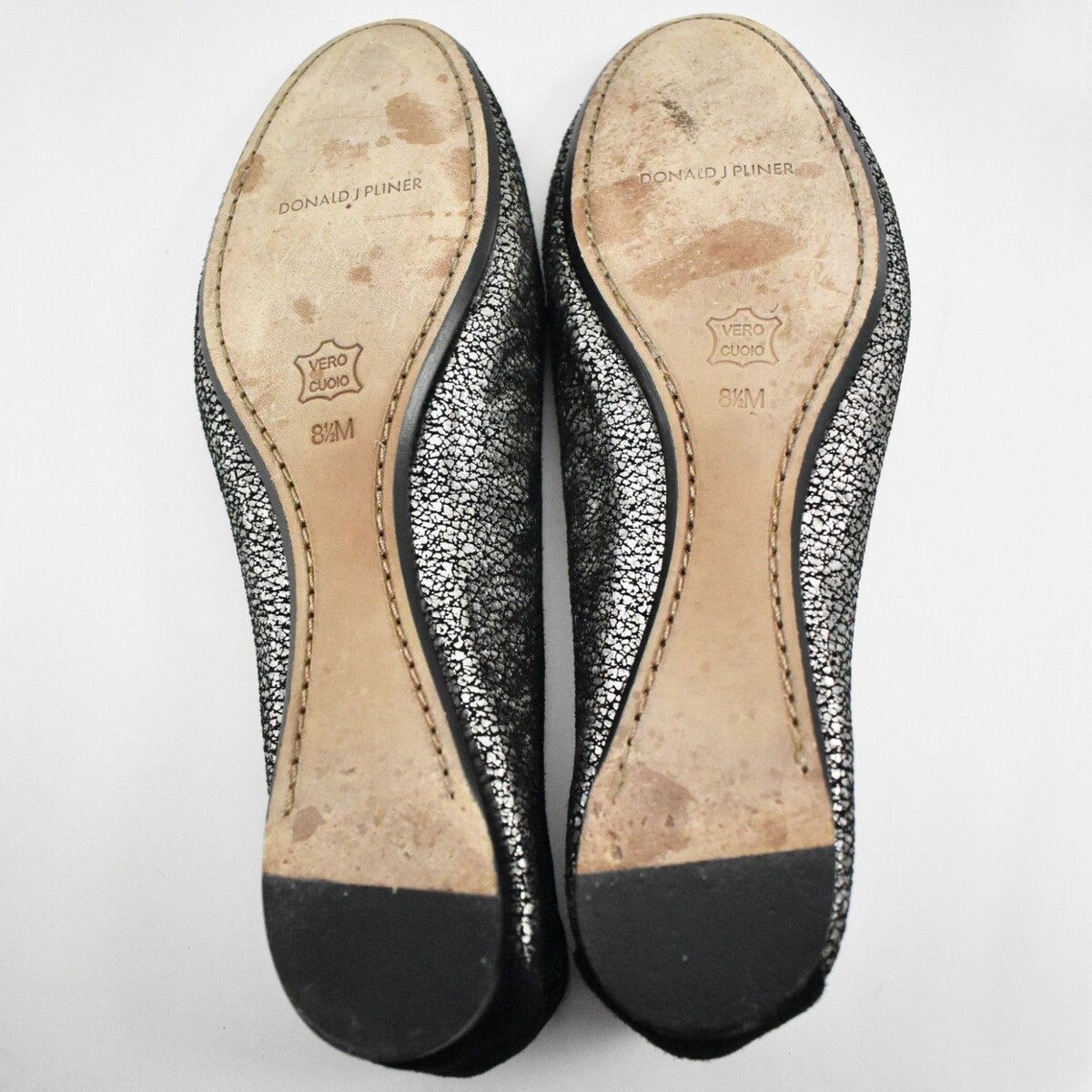 Donald J Pliner Dendasp Metallic Silver/Black Suede Flats - Women's Size 8.5 M