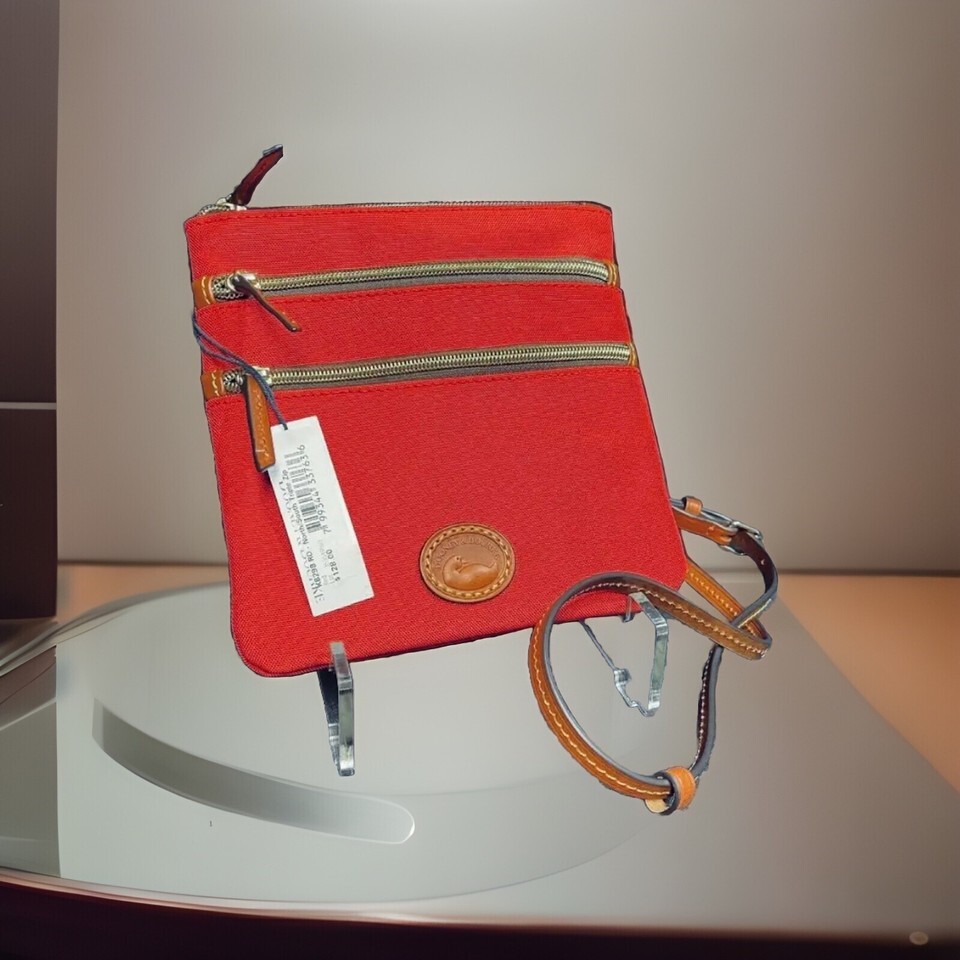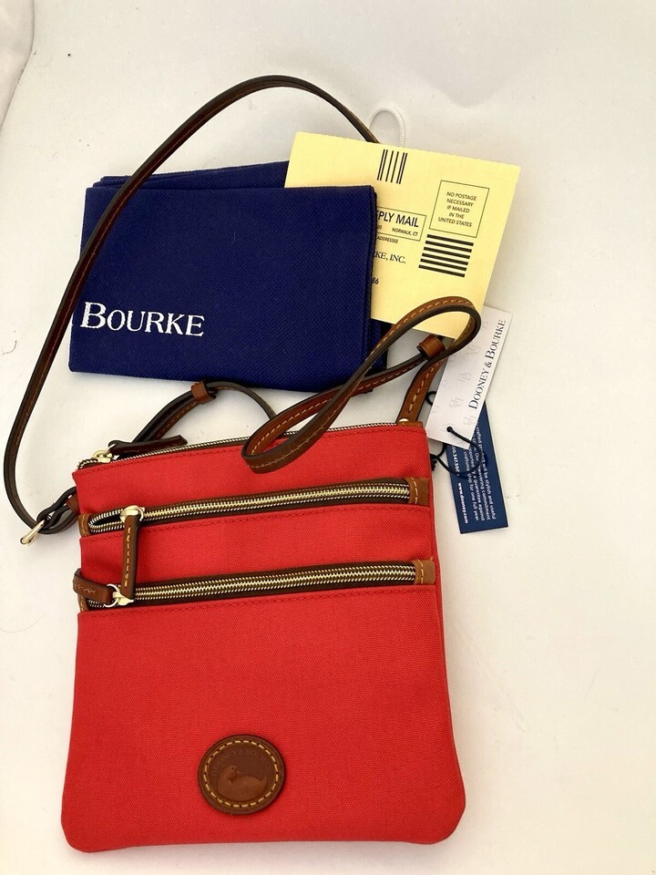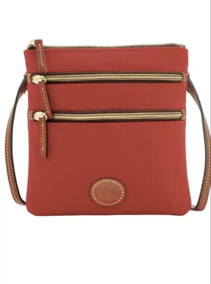 - Dooney & Bourke Triple Zip Durable Red Nylon/Leather Crossbody Bag Dust Bag NWT