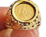 - Dos Pesos gold coin ring encased in 14k yellow gold unique design setting