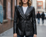Double Breasted Women's Lambskin Black Blazer Formal Leather Genuine Handmade