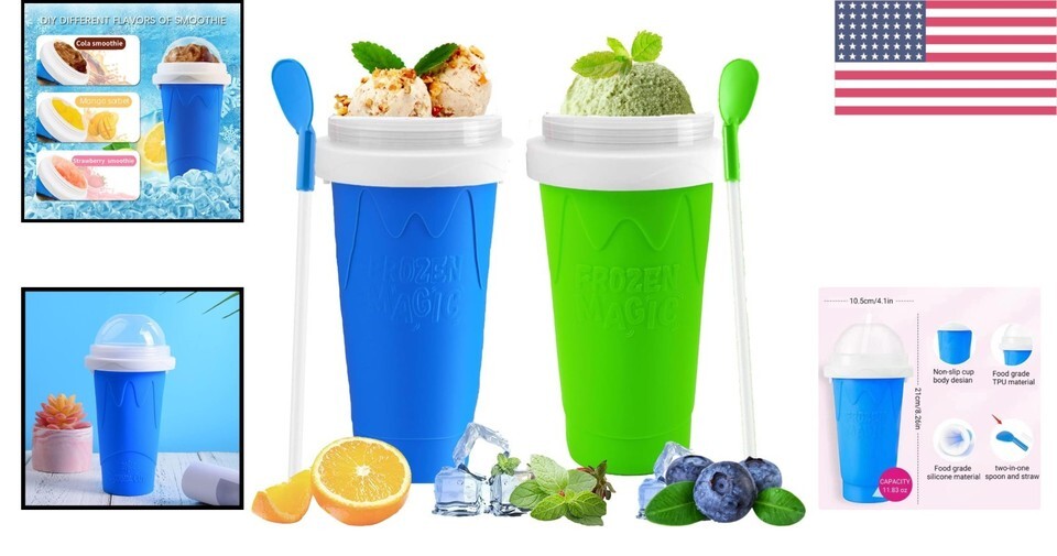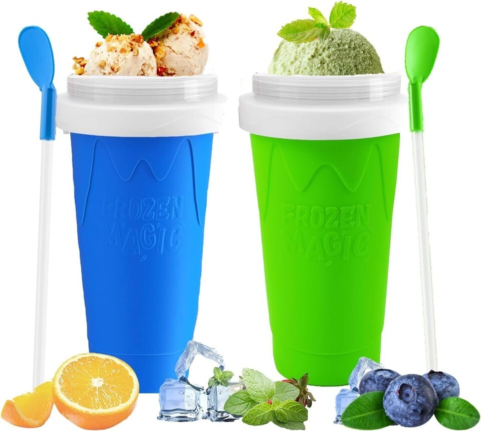 - Double Layer Silicone Slushy Maker Cups - Perfect 2 Pack for Quick Frozen Treats