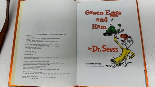 - Dr. Seuss Green Eggs and Ham Party edition 50th Anniversary Hard Cover Book
