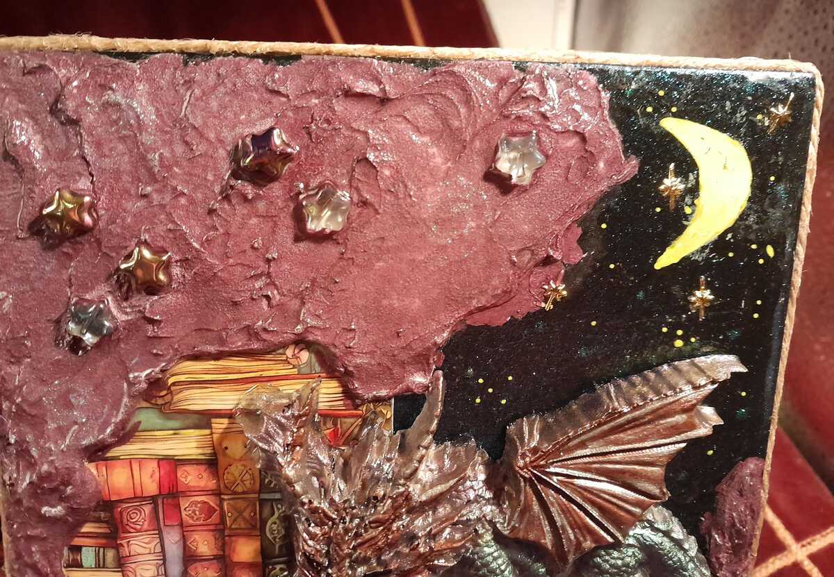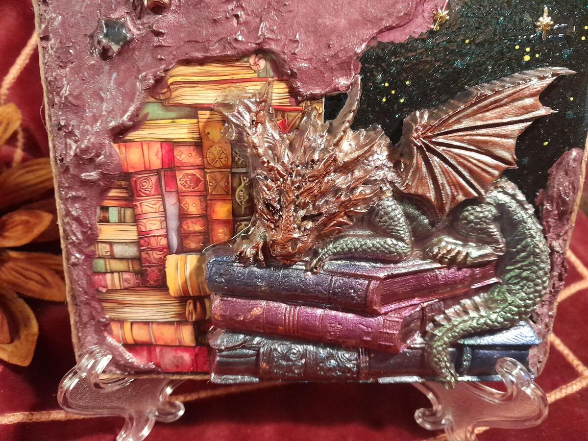 - Dragon Guards Library Mixed Media Ceramic Tile Gift Handmade Wall Decor Gift Uni