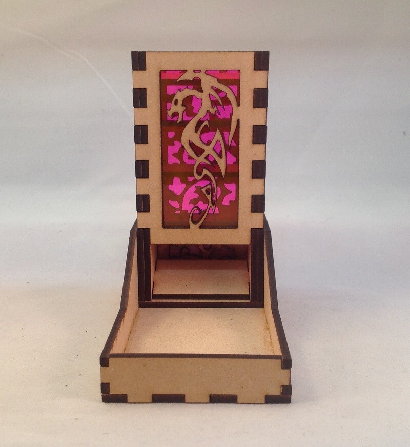 - Dragon v4 Dice Tower & Tray Neon Pink Acrylic Window COMPACT DESIGN Laser Cut