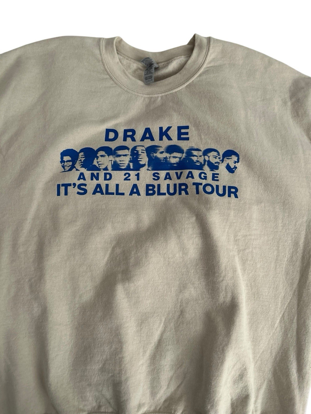 - Drake x 21 Savage It’s All A Blur Tour Crewneck Sweatshirt Mens L Beige Hip-Hop