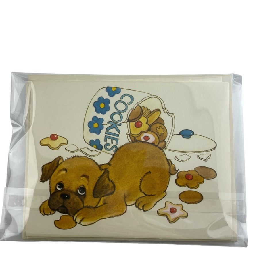 Three Adorable Cards and Envelopes showing a pug puppy in the cookie jar.