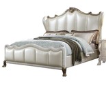 - Dresden II King Bed, Pearl White Faux Leather & Gold Patina Finish