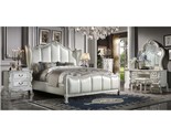 The Dresden II vanity stool is exclusively designed and filled with a romantic spirit that will transport you to regal times. The piece is crafted and inspired by the luxurious designs of the past; this gorgeous piece features a stunning champagne PU seat with button tufting. Expertly detailed, this gorgeous vanity stool highlights elaborate carvings on its frame. This vanity stool is finished in an elegant bone white with hand-brushed silver accents and sits on elegant claw feet.