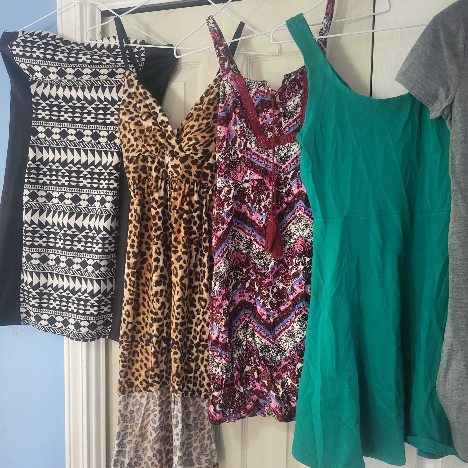 This lot of 5 dresses and 1 romper is still in good condition. Some brands include forever21, express, no boundaries.