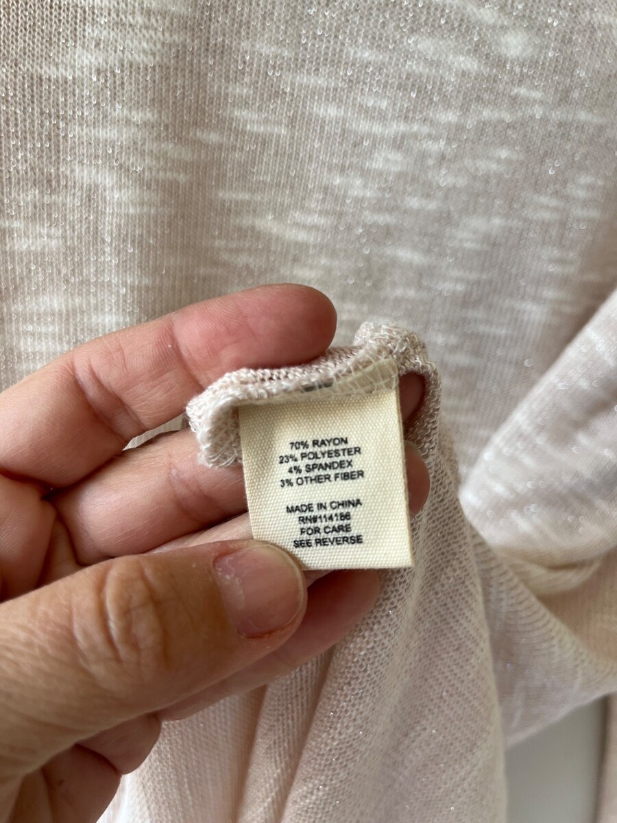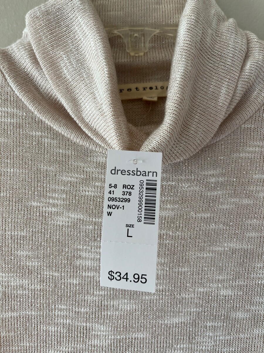 - Dressbarn Sz L Turtle Neck Street Shiny Beige Pullover Blouse Long Sleeve Top