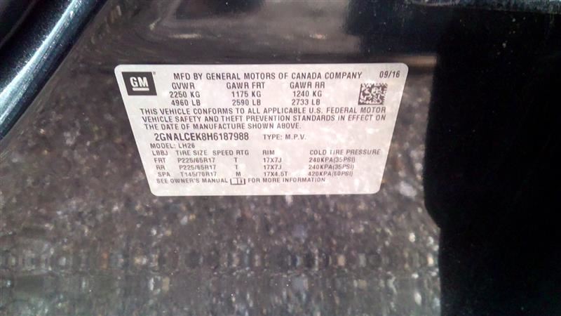Driver Left Rear Window Regulator Fits 12-17 EQUINOX 103634284
