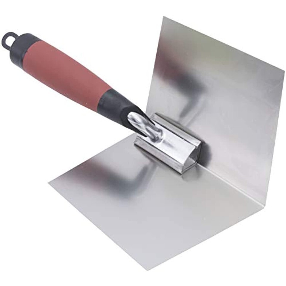 Product Description Marshalltown 23D Drywall Plastering Corner Trowel 4 X 5 From the Manufacturer Marshalltown 15323 4 X 5 Inside Drywall Corner Trowel with DuraSoft Handle is a lightweight tool made from one piece of flexible stainless steel with aluminum mounting. The blade set at a 103 degree angle that flexes to form a perfect 90 degree corner during use. Use it to embed tape and smooth out the final layer of mud to taped corners. The handle is equipped with a resilient DuraSoft handle with finger guard for comfort and durability. The trowel is 5 x 4-inches.