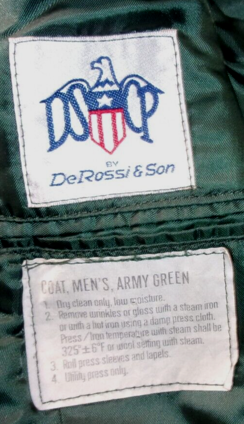 Primary image for DSCP DEROSSI &SON CLASS A DRESS GREEN ARMY SERGE AG-489 COAT JACKET UNIFORM 36R